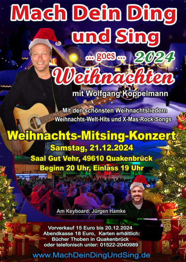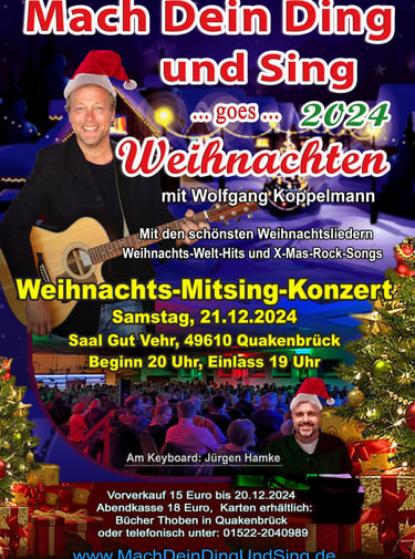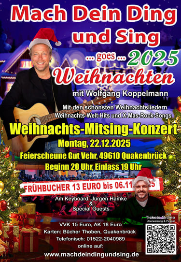 In ein paar Wochen ist Weihnachten und auch in diesem Jahr wollen wir das Weihnachtsfest wieder mit Euch in gemütlicher, weihnachtlicher Atmosphäre mit einem Weihnachts-Mitsing-Konzert einläuten. „Mach Dein Ding und Sing goes Weihnachten 2025“
