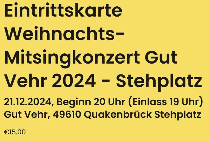 Die Karten werden an der Abendkasse bzw. am Eingang auf Ihren Namen hinterlegt. Nach dem Kauf bekommen Sie eine Bestellbestätigung.
