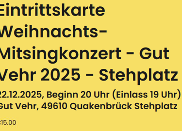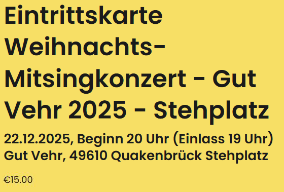 Die Karten werden an der Abendkasse bzw. am Eingang auf Ihren Namen hinterlegt. Nach dem Kauf bekommen Sie eine Bestellbestätigung.